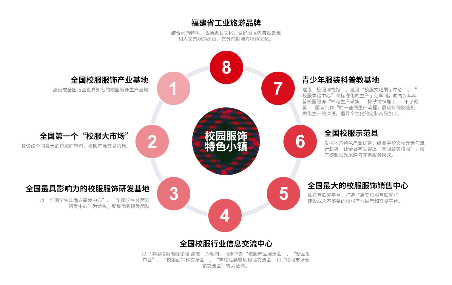 校服產(chǎn)業(yè)是惠安的傳統(tǒng)支柱產(chǎn)業(yè),也是伴隨著改革開(kāi)發(fā)腳步發(fā)展起來(lái)的一個(gè)產(chǎn)業(yè)。特別是近年來(lái),在中國(guó)教育裝備行業(yè)協(xié)會(huì)和上級(jí)黨委、政府的關(guān)心支持下,惠安的校服產(chǎn)業(yè)進(jìn)入了高速發(fā)展階段,目前擁有生產(chǎn)企業(yè)500余家、銷(xiāo)售隊(duì)伍上萬(wàn)人,產(chǎn)銷(xiāo)量占據(jù)全國(guó)半壁江山?;莅部h委、縣政府高度校服產(chǎn)業(yè)的發(fā)展,研究制定更具針對(duì)性的幫扶政策,加大對(duì)校服企業(yè)生產(chǎn)性設(shè)備引進(jìn)、招投標(biāo)等方面的扶持力度,助力產(chǎn)業(yè)做大做強(qiáng),進(jìn)一步推動(dòng)“工業(yè)設(shè)計(jì)”在惠安校服企業(yè)“落地生根”“生根發(fā)芽”“茁壯成長(zhǎng)”;進(jìn)一步打響中國(guó)校園服飾產(chǎn)業(yè)基地品牌,推動(dòng)中國(guó)校園服飾產(chǎn)業(yè)基地落地;進(jìn)一步完善校服產(chǎn)業(yè)鏈條,彌補(bǔ)企業(yè)研發(fā)短板,做大做強(qiáng)惠安校服產(chǎn)業(yè)。本概念規(guī)劃是為創(chuàng)建“中國(guó)校園服飾產(chǎn)業(yè)基地”而進(jìn)行的探討實(shí)踐。