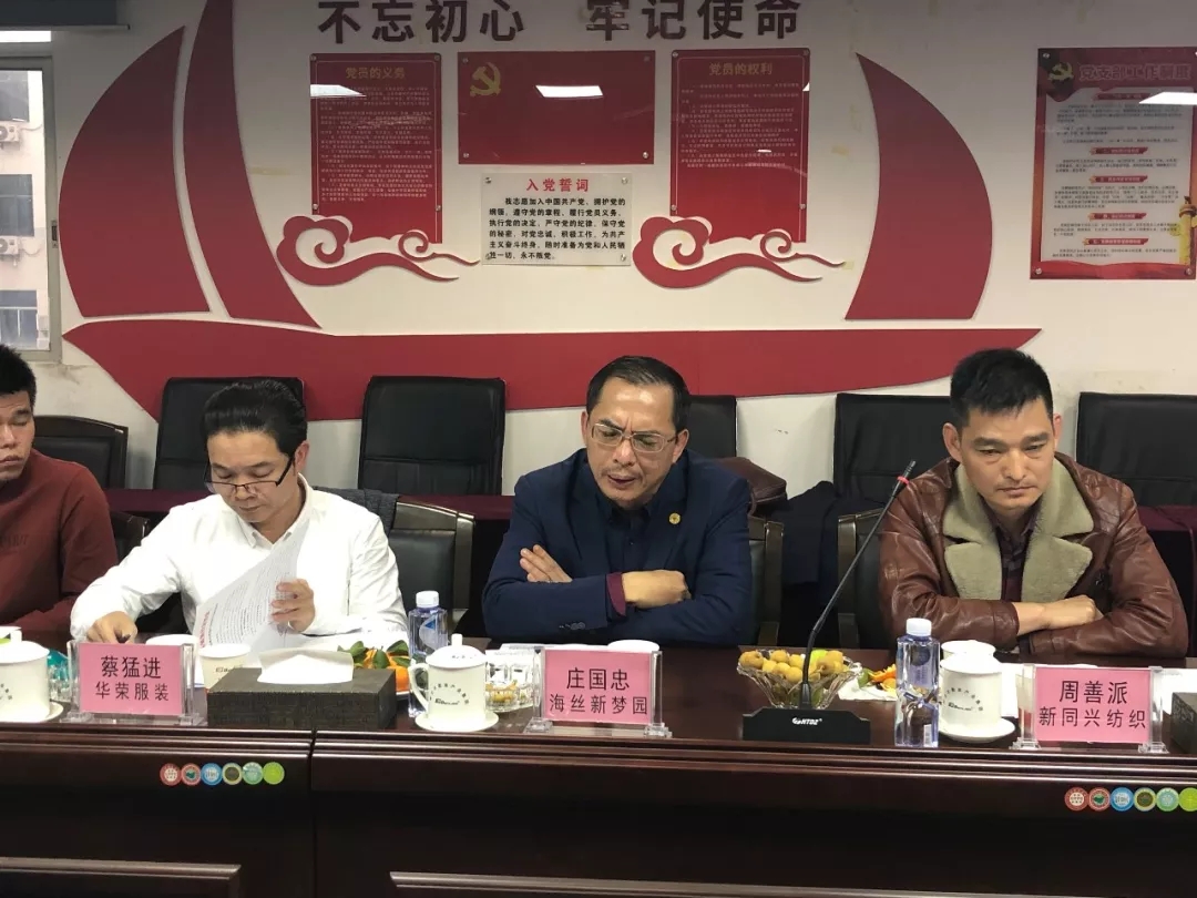 考察團(tuán)邀請(qǐng)到中國(guó)教育后勤協(xié)會(huì)校服管理專業(yè)委員會(huì)副主任金堅(jiān)兵、南寧市新希望教育用品有限責(zé)任公司總經(jīng)理勞豪參與交流會(huì),在交流會(huì)中,分別對(duì)校服協(xié)會(huì)會(huì)員企業(yè)的經(jīng)營(yíng)與管理提出建議與思路、分享經(jīng)驗(yàn)。