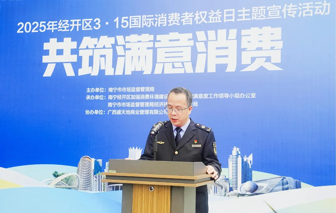 會議伊始,南寧市市場監(jiān)督管理局經(jīng)濟技術(shù)開發(fā)區(qū)分局負責(zé)人龍漢傳發(fā)表了重要講話。他強調(diào),消費者權(quán)益保護是市場經(jīng)濟健康發(fā)展的基石,關(guān)乎每一位市民的切身利益 。各單位、各企業(yè)應(yīng)高度重視消費者權(quán)益保護工作,積極履行社會責(zé)任,共同為消費者創(chuàng)造一個公平、公正、誠信的消費環(huán)境。