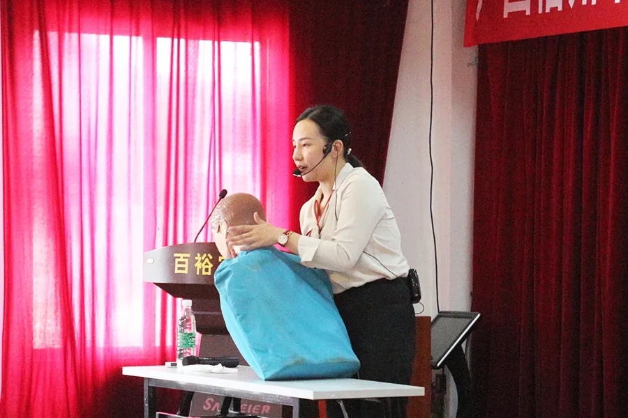 講座上,百裕實(shí)業(yè)總經(jīng)理曾晏來表示公共安全職業(yè)健康專題講座,是“安全生產(chǎn)月”系列活動(dòng)之一。目前,公司積極開展形式多樣、內(nèi)容豐富的 “安全生產(chǎn)月”系列活動(dòng),希望通過這次活動(dòng),進(jìn)一步增強(qiáng)員工們的自我保護(hù)、現(xiàn)場救護(hù)和自我保健能力 ,最大限度降低突發(fā)性傷害事件造成的危害,養(yǎng)成良好的健康生活習(xí)慣,提高員工職業(yè)健康意識,增強(qiáng)企業(yè)職業(yè)健康管理。本次培訓(xùn)是比較規(guī)范的一些救護(hù)方法,請同事們認(rèn)真聽,細(xì)心觀察老師的操作方法。
