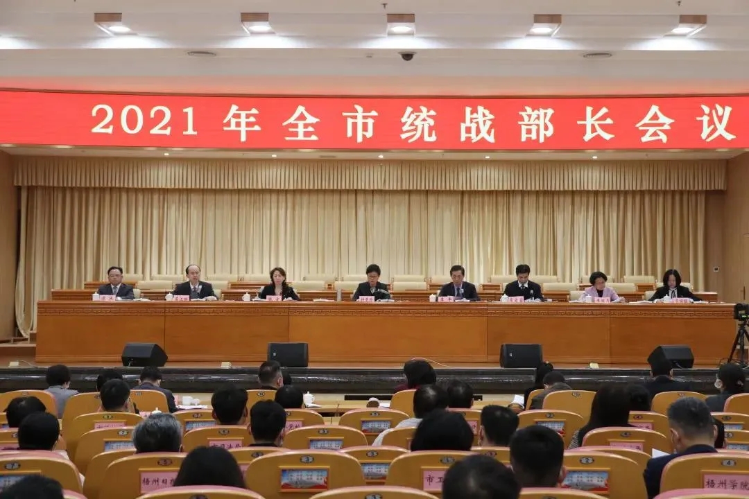 3月5日,梧州市統(tǒng)戰(zhàn)部長(zhǎng)會(huì)議在梧州市聯(lián)合辦公大樓召開,學(xué)習(xí)貫徹全國(guó)、全區(qū)統(tǒng)戰(zhàn)部長(zhǎng)會(huì)議精神,回顧總結(jié)2020年全市統(tǒng)戰(zhàn)工作,部署今年工作任務(wù)。市委常委、統(tǒng)戰(zhàn)部部長(zhǎng)鐘碧珍出席會(huì)議并作工作部署。