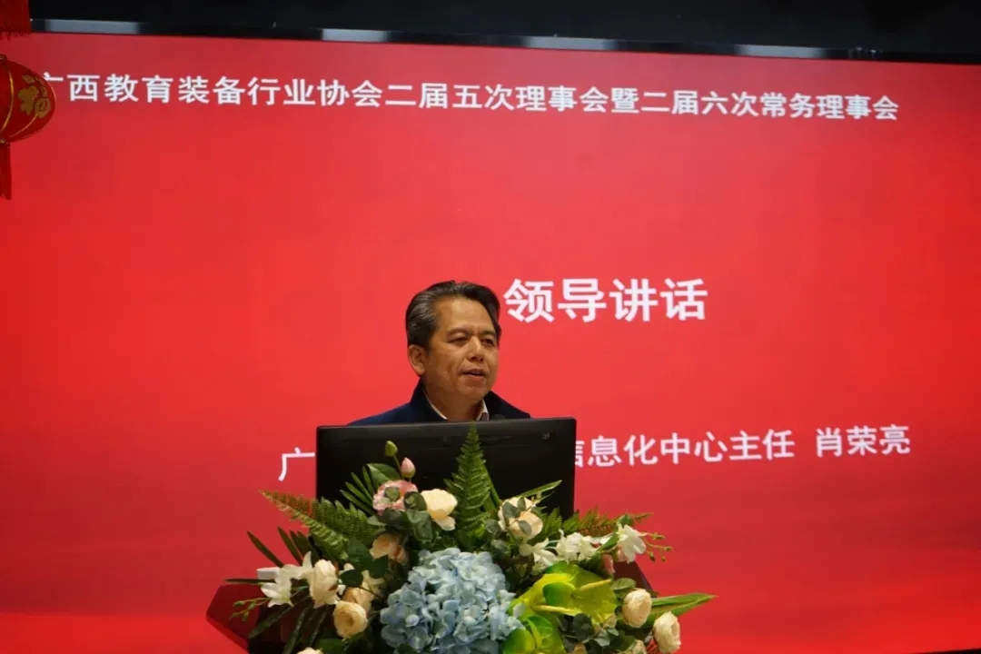 3月3日,廣西教育裝備行業(yè)協(xié)會(huì)二屆五次理事會(huì)暨二屆六次常務(wù)理事會(huì)在南寧召開(kāi)。廣西教育裝備行業(yè)協(xié)會(huì)(以下簡(jiǎn)稱(chēng)協(xié)會(huì))會(huì)長(zhǎng)張珊、廣西教育技術(shù)和信息化中心主任肖榮亮、督導(dǎo)室副主任、國(guó)家教育部特邀督學(xué)王濱、協(xié)會(huì)常務(wù)副會(huì)長(zhǎng)、副會(huì)長(zhǎng)、常務(wù)理事、理事及分會(huì)會(huì)長(zhǎng)、副會(huì)長(zhǎng)、秘書(shū)長(zhǎng)等參加了本次會(huì)議。會(huì)議由廣西教育裝備行業(yè)協(xié)會(huì)常務(wù)副會(huì)長(zhǎng)貴尚明主持。