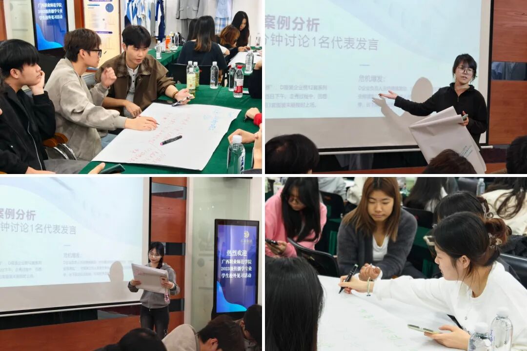 為增強(qiáng)見習(xí)活動的互動性,各小組圍繞企業(yè)提供的真實傳播案例展開討論。之后由各小組代表上臺進(jìn)行匯報發(fā)言。這一環(huán)節(jié)鍛煉了學(xué)生的分析表達(dá)與團(tuán)隊協(xié)作能力。