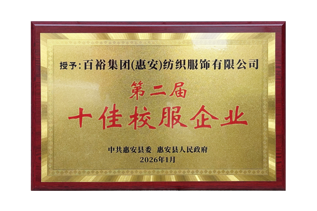 在此次活動中,百裕集團(tuán)憑借卓越的研發(fā)實力、過硬的產(chǎn)品品質(zhì)與深厚的行業(yè)影響力,榮獲“第二屆十佳校服企業(yè)”稱號 ,充分彰顯了行業(yè)與政府對集團(tuán)在校園服飾領(lǐng)域深耕細(xì)作的高度認(rèn)可。