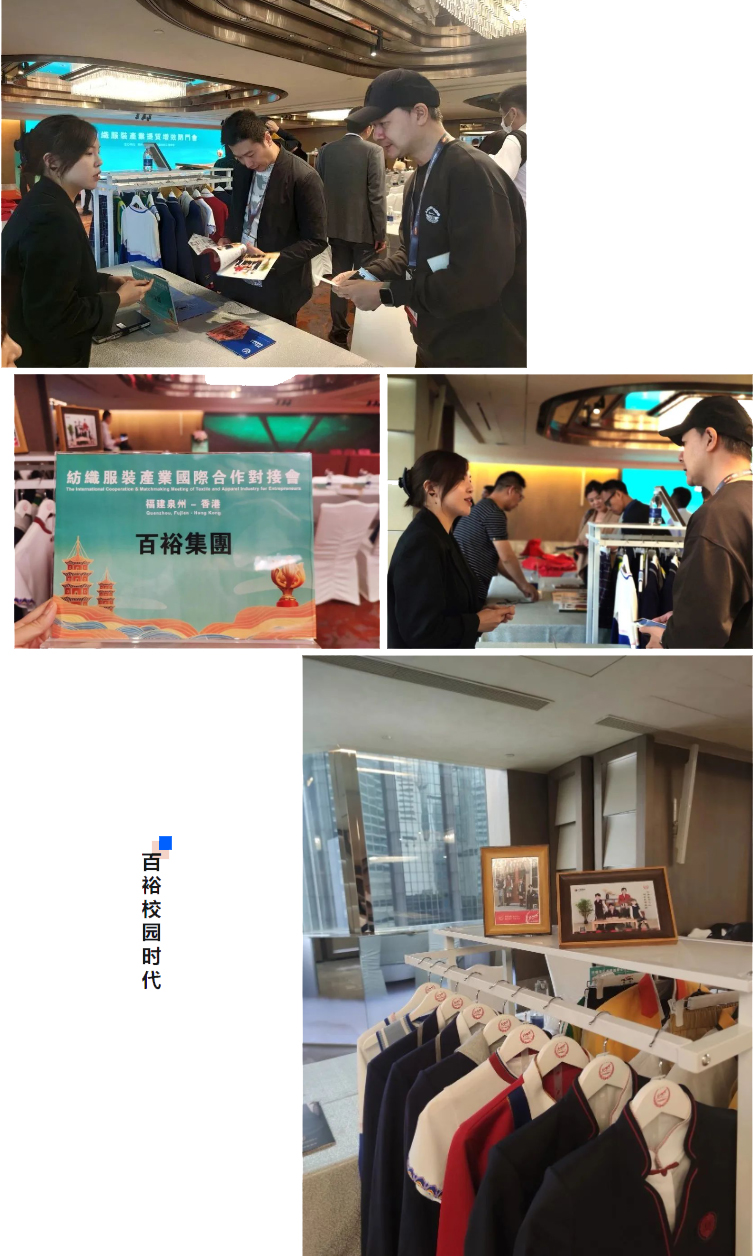 百裕校園時代精品服飾亮相紡織服裝產(chǎn)業(yè)國際合作對接會會場,百裕校園時代校園服飾以“科技創(chuàng)新、著裝育人、呵護明天、文化傳承”為品牌理念;此次展示的精品服飾融入了民族文化元素,科技面料及工藝、時尚流行元素等,向參觀者展示了校園服飾的獨特魅力,不斷吸引了眾多參觀者駐足與關(guān)注。受到廣大觀眾的與閩港兩地的政商代表們進行深入交流,攜手探索紡織產(chǎn)業(yè)的新格局、新生態(tài),攜手合作共謀發(fā)展。