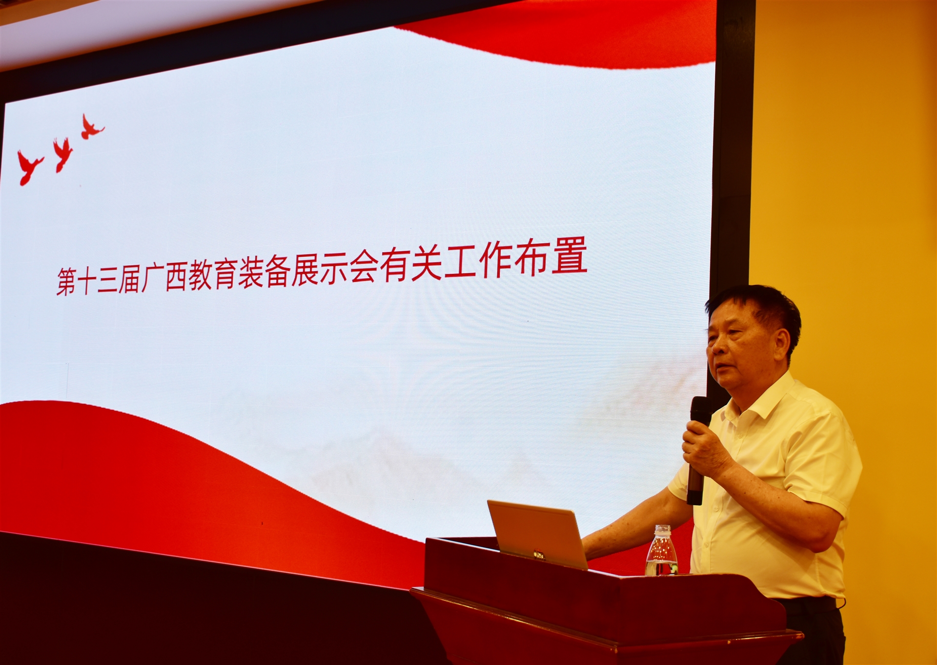 最后,廣西教育裝備行業(yè)協(xié)會創(chuàng)會會長陳鐵華做相關(guān)工作布置,他就今年教育裝備突出的亮點、協(xié)會如何發(fā)揮搭建與政府、學(xué)校聯(lián)系的橋梁作用、為政府為教育、為會員發(fā)展服務(wù)等方面進行了詳細分析,他表示,今年第十三屆廣西教育裝備展將更注重科技創(chuàng)新產(chǎn)品,鼓勵和提倡各企業(yè)組成聯(lián)盟展團,更全面地展示相關(guān)領(lǐng)域的優(yōu)秀產(chǎn)品,給觀眾更好的現(xiàn)場體驗。未來,協(xié)會將與會員企業(yè)攜手共進,為教育裝備行業(yè)的發(fā)展貢獻智慧,提供優(yōu)質(zhì)服務(wù)。