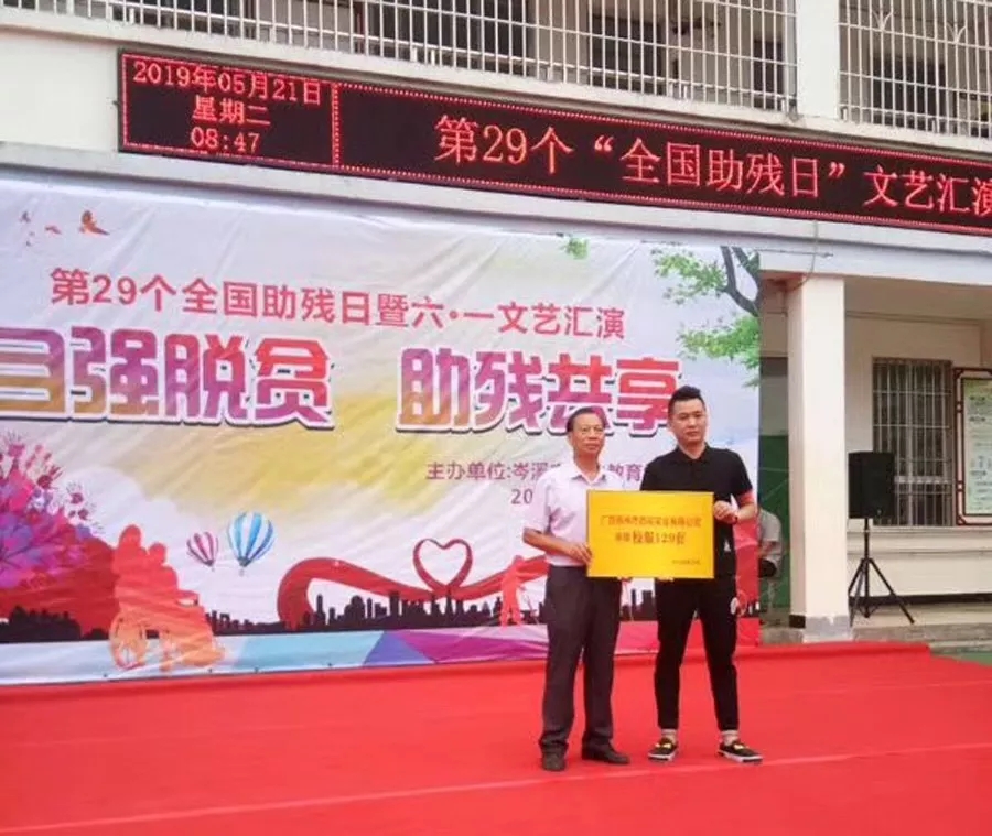時值第二十九個全國助殘日,521日,以“自強脫貧 助殘共享”為主題第29個全國助殘日暨六一文藝匯演在岑溪市特殊教育學(xué)校舉行,活動中,百裕集團為孩子們送出愛心校服129套,以此共同為孩子們慶祝屬于他們的節(jié)日。